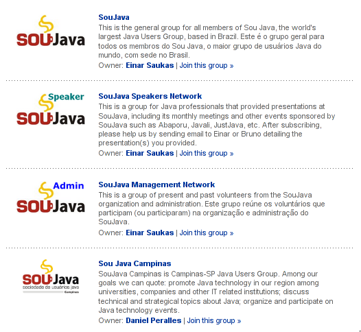 SouJava Admin Este grupo é restrito às pessoas que participam da organização do SouJava.</li> </ul>